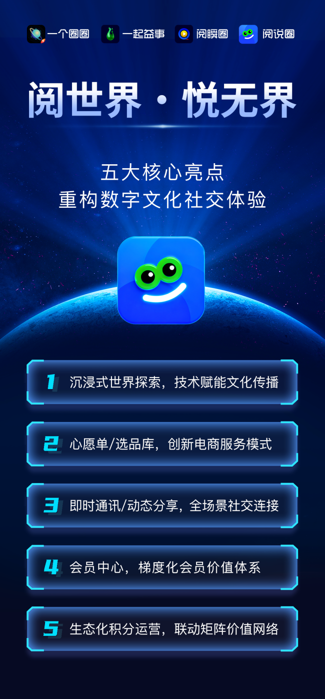 生态化积分运营实现了阅说圈APP与“一个圈圈”数字文化矩阵的全域生态联动。依托“一个圈圈”460万+注册用户的市场基础与绿色积分系统,阅说圈无缝对接矩阵内的技术资源与服务经验,实现“技术同源、生态互通”高起点发展,并通过活力能量积分连接实现与“一起益事”、“阅瞬圈”的联动。