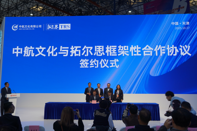10月17日上午,航空产业大脑与智媒技术创新系列签约活动在第七届天津直博会航空工业集团展台发布区举行,中航文化有限公司携手多家合作伙伴,共签署三项合作协议,标志着以先进技术赋能媒体智能化升级,以智媒技术赋能低空经济发展迈出了具有探索意义的一步。