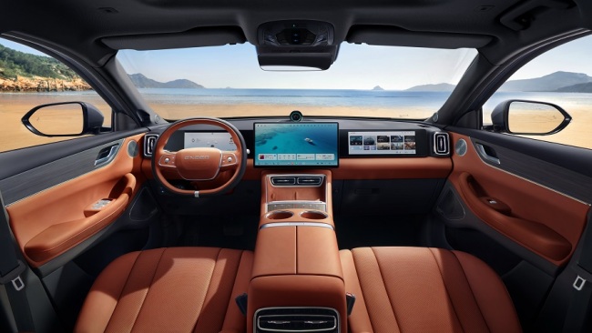 进入座舱,差异化的设计理念更加凸显。Macan坚持驾驶者中心的传统豪华布局,而星途ET5则致力于打造“全员奢享”的移动空间。爱马仕橙内饰配色的运用,搭配麂皮顶棚与整车软包工艺,营造出全包围式的豪华氛围。中控采用源自中国古典建筑的中轴对称设计,屏幕布局形成“门、殿、院”般的空间层次,营造出东方特有的仪式感。