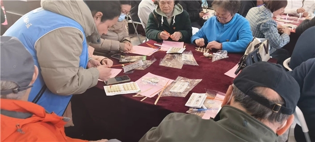 在实践环节,老师分发了准备好的竹篾材料,并手把手地指导大家制作简易的竹编风铃。起初,面对纤细的竹篾,不少居民显得有些手足无措,但在老师的悉心指导和邻里间的互相帮助下,大家很快掌握了窍门。活动现场,只见竹篾在指尖灵活地穿梭、交织,发出沙沙的悦耳声响。年长的居民仿佛找回了童年的记忆,手法愈发熟练。