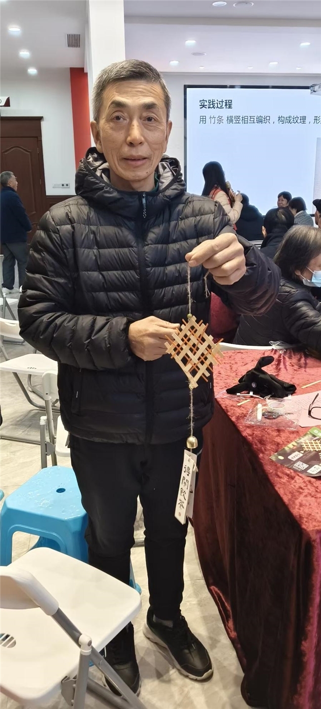 活动伊始,社区特邀的竹编手艺刘老师首先向大家介绍了竹编这项非物质文化遗产的历史渊源与文化价值。从日常用具到精美艺术品,竹编承载着中华民族的智慧与审美。老师耐心讲解了竹编的基本技法,如挑、压、穿、撕、锁、钉、套、缠等,并展示了精美的竹编成品,瞬间点燃了在场居民的学习热情。
