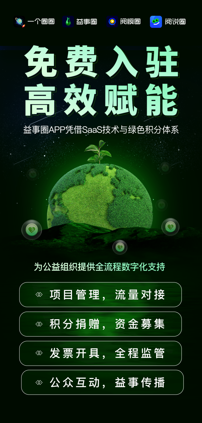 近日,原“一起益事 APP”完成品牌战略升级,正式更名为“益事圈 APP”,并宣布即将重磅启动公益机构入驻行动。这一举措在国内公益领域掀起波澜,作为国内首家践行公益机构免费入驻的数字公益平台,益事圈以“科技向善”为核心理念,依托先进的 SaaS 技术优势与创新绿色积分体系,为公益组织数字化转型、高效连接大众提供全方位技术与服务支持,有望重塑公益生态链接模式,引发公益界高度关注。
