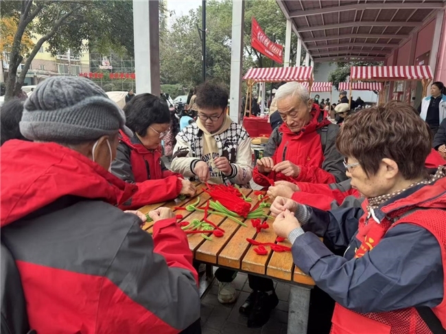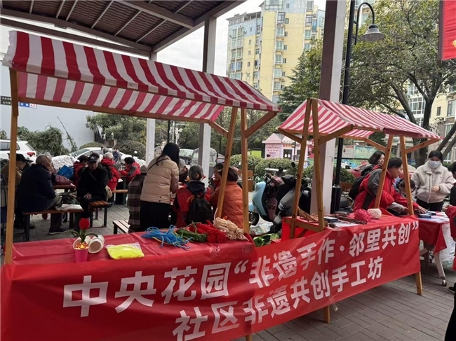 2025年12月5日,武昌区南湖街道中央花园社区广场变身一座流动的“非遗传承馆”。一场别开生面的“非遗绒花市集”在此温情开市,活动现场划分的“手工体验区”、“作品展示区”与“成品义卖区”三大区域人头攒动,社区居民亲手制作的绒花作品在此汇聚、展示与流转,将非遗技艺、社区温情与公益善举紧密编织在一起。