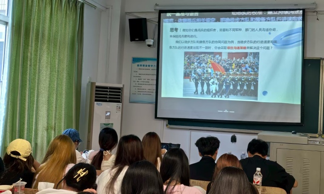 在纪念中国人民抗日战争暨世界反法西斯战争胜利80周年这个意义非凡的日子里,一场别开生面的教学变革在武汉工程科技学院经济与管理学院悄然上演。该校经济与管理学院叶舜老师和李媛媛老师别出心裁,将九三阅兵元素巧妙融入课堂,开展了跨课程的课程思政教学联动,为学生们带来了前所未有的学习体验。