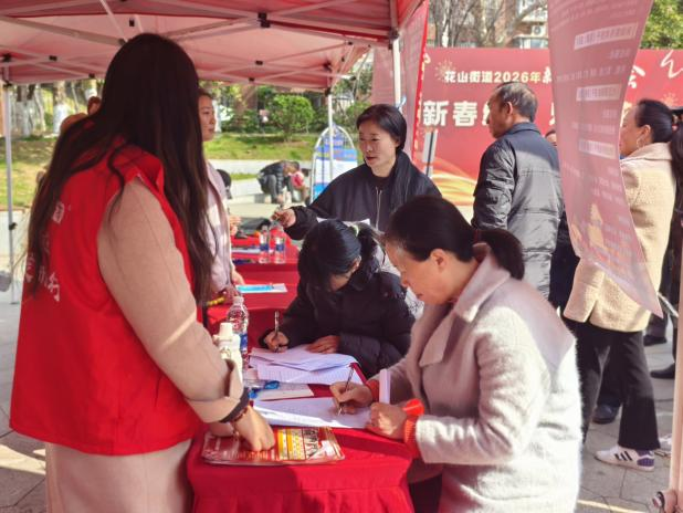 春风送岗暖人心,就业服务零距离。3月10日上午,武汉市花山文化广场上人头攒动,一场以“新春纳才 乐业花山”为主题的2026年春季招聘会在此火热举行。本次招聘会由花山街道办事处主办,橘园社区与竹园社区就业服务驿站联合承办,时刻青年公益人才促进发展中心协办,链接华中科技大学、华中农业大学、中南财经政法大学、湖北工业大学、武汉工程大学,文华学院财务管理2501团支部和经济管理学部工商管理2501班30余名志愿者到现场协助活动开展。本次招聘会聚焦大龄人员、宝妈等就业群体需求,通过“线下招聘+线上直播”双轨联动的创新模式,将就业岗位真正送到居民“家门口”,全力打通就业服务的“最后一公里”。