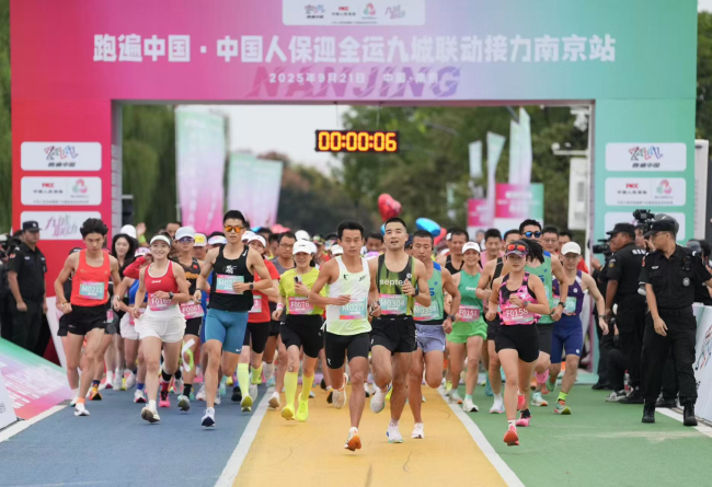 央视网消息:全民迎全运,相约粤港澳。9月21日,跑遍中国·中国人保迎全运会九城联动接力(简称九城联动)第七站在十运会举办城市南京鸣枪起跑。千余名跑步爱好者齐聚南京建邺区“马拉松岛”,共同领略全运城市激情四射的“心跳”和智慧跑道的科技狠活,为十五运会加油助威。