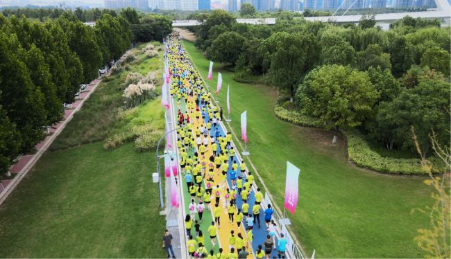 南京站设10公里和5公里两个项目,赛道沿中新南京生态科技岛环岛智慧跑道而设,选手们不仅可以饱览生态科技岛的旖旎风光,还能感受现代化生态科技、自然美景与全运氛围的完美融合,形成一条色彩绚丽的流动 “长河”。比赛期间,许多晨练的市民自发来到赛道两侧为选手们加油呐喊,此起彼伏的助威声营造出热烈气氛。