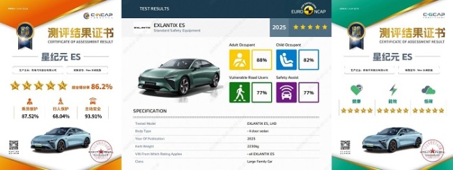 星纪元ES则以安全的满分答案,成为一座为您和家人打造的、坚不可摧的移动堡垒。凭借硬核实力,星纪元ES已将C-NCAP 2021五星、E-NCAP 2025五星及C-GCAP五星多项权威评级悉数收入囊中,达成了安全领域的“五星大满贯”成就,也为全球豪华电动轿车树立了全新的安全标杆。