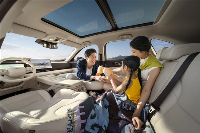 储物空间方面。全车遍布28处人性化储物空间,随身小物件都能妥善安置。后备箱常规容积540L,可轻松容纳3个28寸拉杆箱,后排座椅放倒后最大容积可达1366L,折叠自行车、帐篷、烧烤炉等大件行李都能塞得下。拥有大容量的同时,后备箱还采取了大开口设计,拿取物品更轻松。