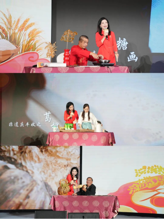 作为炎帝神农诞生地与农耕文明发源地,历史悠久的随县孕育了众多值得关注的非遗技艺。活动现场,非遗糖画与来自随县的特色非遗根雕、葛粉一同亮相舞台,用特色非遗文化诠释丰收。烘托了现场粮油增产、共话丰收的热烈气氛。