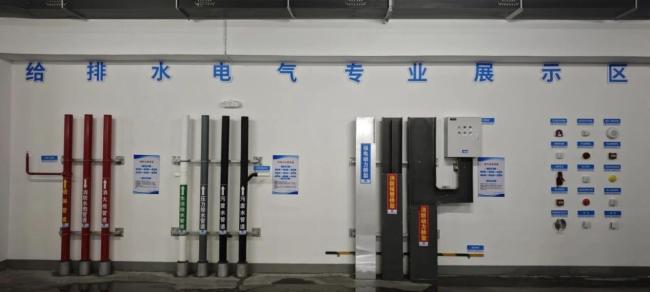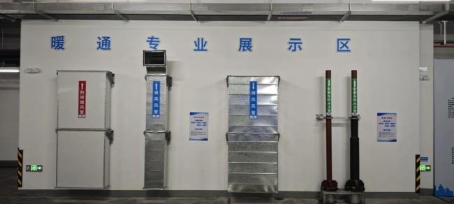 项目注重实体工艺样板引路,共布设了砌体、抹灰、涂料、钢结构、给排水、空调通风、强弱电、幕墙、精装修、消防等十大工艺样板展区,此外还统筹建立高效沟通协调机制,严格工序交接,确保各专业施工衔接有序,实现系统工程集成最优化。