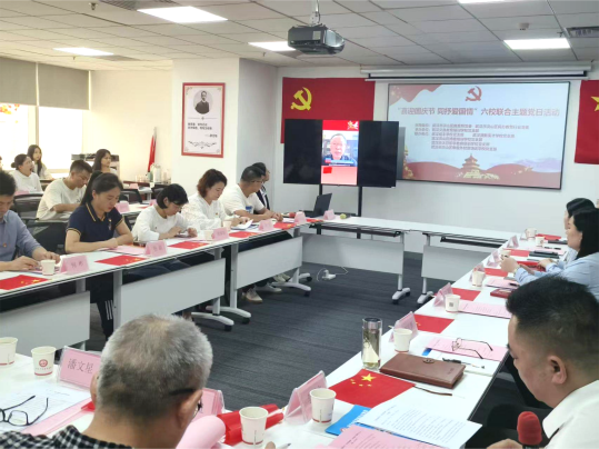 2025年9月26日下午,武汉市洪山区六所民办教育机构联合举办“喜迎国庆节 同抒爱国情”主题党日活动。本次活动由武汉市洪山区教育局党委、洪山区民办教育行业党委指导,由武汉文泉教育培训学校联合武汉成丰学校、武汉澳新英才学校、武汉洪山区博奥培训学校、武汉大芬乐学教育培训学校、武汉市洪山区零度外经贸培训学校联合举办,活动在武汉文泉教育培训学校举行。
