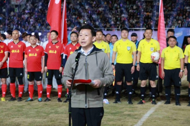 最激动人心的时刻到来,稻花香集团董事长蔡开云、十堰市足球协会主席王国明、各县市区足协主席共同开球,一脚开球,划破夜空,踢出堰超活力,开启绿茵激战。
