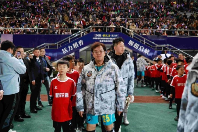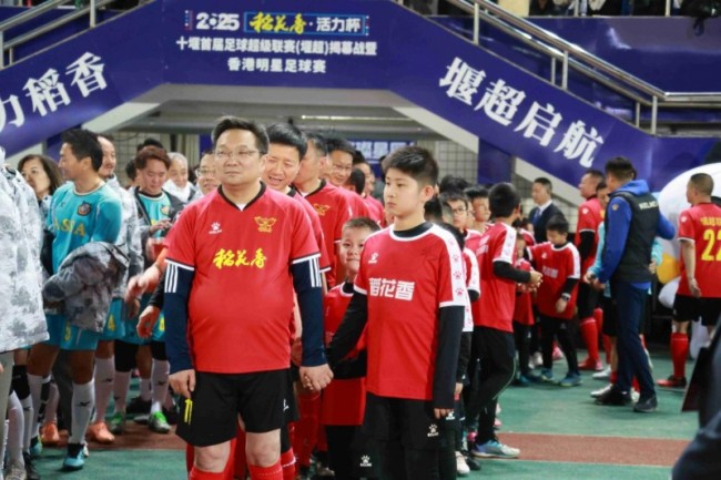 动感的足球操暖场后,经典旋律《朋友》响彻全场,香港明星足球队、堰超联队携手球童亮相,巨星与本土球员并肩而行,瞬间引爆了看台积蓄已久的热情,引来一波高过一波的欢呼与尖叫。