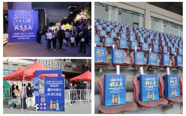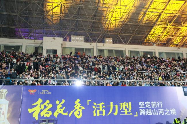 体育中心主干道上的稻花香产品展牌、道旗、入场指示牌,成为最亮眼的风景;内场环线一系列稻花香主题画面,“稻花香CCTV民族匠心品牌”“为幸福生活酿美酒”……充分展现了稻花香蓬勃向上的品牌活力;观众座位上摆放着整齐的伴手礼,更构成一片绚丽的蓝色海洋。