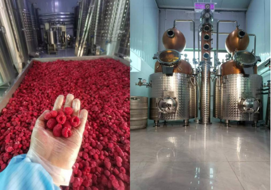 在实现种植端与模式端的双重突破后,王国保顺势将发展目光投向产业链延伸,提出精深加工是提升产品附加值的核心路径。为此,公司高标准建成有机树莓产业链研发生产车间、食用菌种研发生产车间及专业冷库,围绕两大核心品类搭建系统化加工体系,制定严苛加工标准,将全流程质量检测与精细化生产工艺贯穿始终,保障产品品质稳居行业前列。针对树莓鲜品保质期短的痛点,鲜果采摘后立即送入冷库速冻锁鲜,同时按采摘天气分类筛选,精选八成熟以上的优质原料采用恒温低温慢发酵工艺,开发出生态有机树莓果酒、白兰地、零添加NFC果汁、原浆口服液、冻干果、冻干粉等全品类深加工产品;针对食用菌特性,则采用低温烘干、真空包装技术,打造干货礼盒、即食汤包等便捷产品,最大程度保留菌菇的鲜香风味与营养成分。这一系列举措,不仅破解鲜品滞销难题,更让两大品类的产品附加值实现数倍增长,为产业可持续发展注入强劲动力。