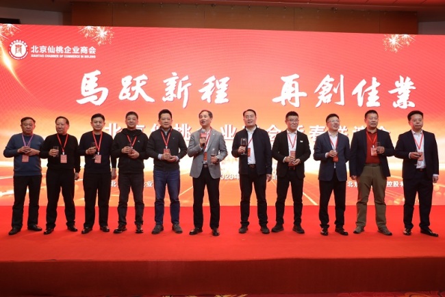 (北京仙桃企业商会理监事会班子成员向与会嘉宾致以新春祝福)