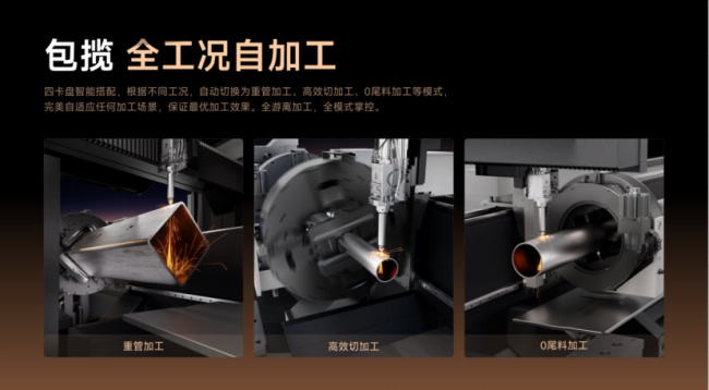 (*行业领创指截至2024年1月23日(邦德激光M系列首次发布时间),邦德激光首次发布系统解耦技术(即双工序并行加工技术),成为激光加工行业内第一家实现四卡盘双工序并行加工的企业。邦德激光M系列是市场上首款应用该技术的管材激光切割机。)