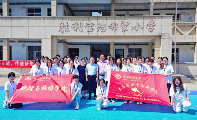 为积极响应“三下乡”社会实践号召,黄冈师范学院地理与旅游学院的42名志愿者走进了宝洁希望小学。在众多青春身影中,周家乐的经历尤为特别。他于2023年3月入伍,先后服役于中国人民解放军93987部队和95183部队,在艰苦地区驻守半年以上,并参与多项重大演习演训任务。退伍重返校园后,他始终心系国防教育,今年他主动请缨参加学院的暑期社会实践活动,精心策划了国防知识宣讲和爱国主义教育活动,决心为乡村孩子们带来一堂生动的爱国启蒙课。