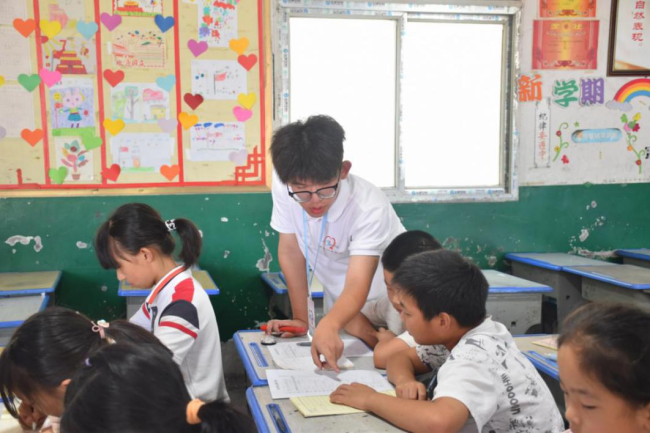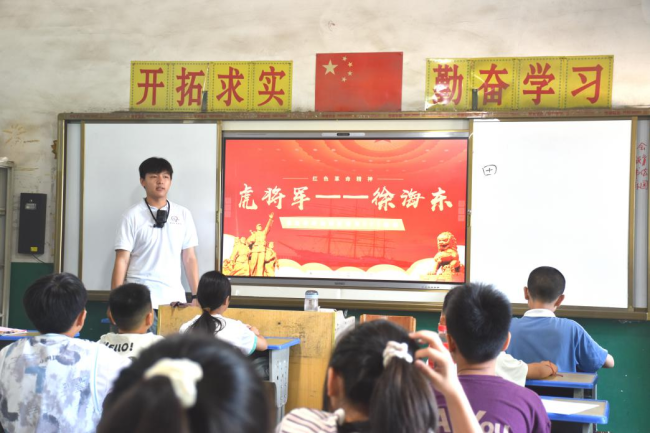 在大悟县黄站镇中心小学,16名青年志愿者化身“知识摆渡人”,创新打造“安全护航+五育润心+AI助学”三维课程体系。红色教育课上,志愿者通过VR技术还原徐海东将军革命足迹,让43名学生在沉浸式体验中厚植家国情怀;艺术工坊里,扭扭棒在稚嫩双手中绽放成向日葵、中国龙,非遗扎染技艺让蓝白布料讲述千年故事;AI绘梦实验室中,孩子们描绘职业理想,志愿者现场生成“消防员”“航天工程师”的虚拟形象,让梦想照进现实。