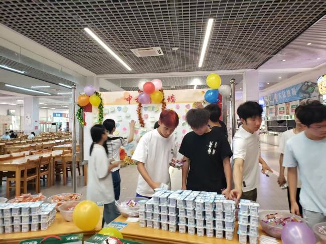中午就餐时段,新老食堂一楼专门设置了月饼发放点。师生员工有序领取,现场洋溢着浓浓的节日氛围。许多同学表示,虽然未能回家与亲人团聚,但在学校同样感受到了家的温暖。此外,食堂还推出了“中秋寄语墙”,不少同学写下对家人、朋友和老师的祝福,字里行间流露着真挚的情感与团圆的喜悦。