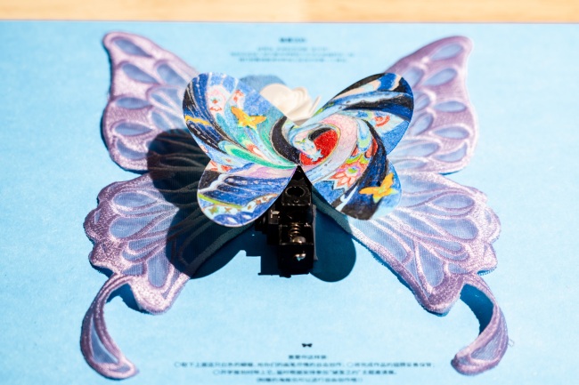记者看到,展览馆内的展台高出地面一米多,桌腿尽可能细化,神似蝴蝶飘在空中的翅膀,展台的方向也是模仿蝴蝶飞舞的动线。蝴蝶造型的作品采用不同材质、绚丽色彩,展示出新生们精巧的构思和创作热情。部分作品的底座为一个蚕蛹造型,一根铁丝从蚕蛹中生出,顶端则是一件精美的蝴蝶作品。“我们是希望一只蝴蝶从蚕蛹里破蝶而出,每个曲线和蝴蝶的形态都不一样,代表每个学生都有自己的个性,都能自由地放飞。”“破茧之约”展览艺术总监、湖北美术学院视觉艺术设计学院2013届校友杨健说。