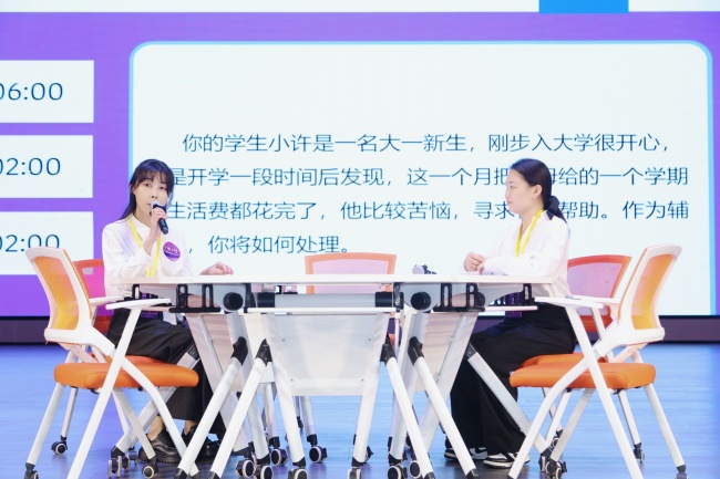 据悉,本次评选展示活动由全国近20所高校联合发起,为期四天。活动设置了班情熟知、谈心谈话、案例研讨和才艺展示四个评选展示环节,通过辨识学生信息、情景模拟谈话、案例互动问答及节目表演等形式,综合考察辅导员的专业能力、教育引导水平、应急处突能力及精神风貌。比赛现场,选手们的表现精彩纷呈、各展所长,面对情景模拟与提问,他们从容应对,充分展现了扎实的日常功底与育人智慧。评委组也根据选手在各环节的表现进行了现场评分。