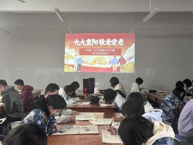 岁岁重阳,今又重阳。为传承中华优秀传统文化,厚植学生敬老爱老的道德情怀,在重阳节来临之际,竹溪一中美术社团以“九九重阳 敬老爱老”为核心主题,开展专属绘画创作活动,让学生在笔墨丹青间感受传统节日的文化魅力,将尊老孝亲的美好品德融入青春创作。