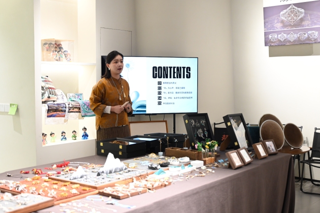 “我们不只是布展,而是在搭建一个可触摸的教学现场。”艺术与传媒学院副院长魏敏指出。展览中所有作品的创作、布展、宣传、销售环节,均由学生团队在教师与企业导师指导下完成。产品设计专业一名大三学生表示:“从研究荆楚文化代表性元素,到设计出系列胸针,再到思考如何陈列、如何向观众讲述背后的故事——这是课堂上学不到的实战经验。