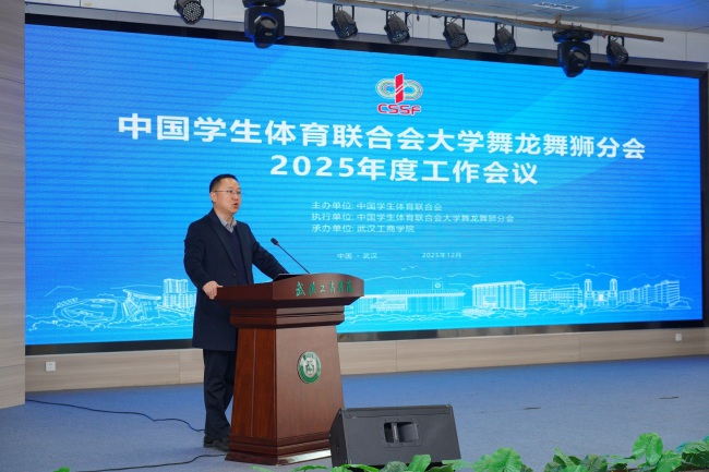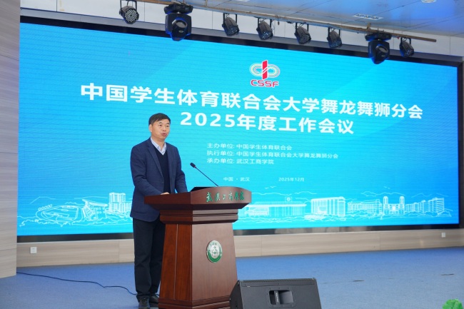 12月5日上午,中国学生体育联合会大学舞龙舞狮分会2025年度工作会议在武汉工商学院召开。