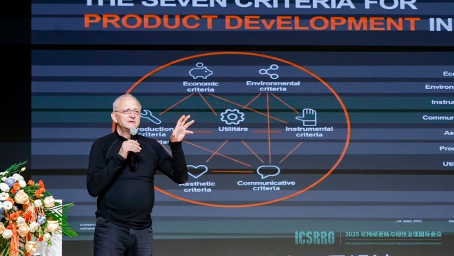 浙江大学教授、欧洲工程院院士、世界生态设计组织总干事应放天作题为《生态设计——可持续发展的战略引擎》的报告,从范式跃迁、价值重构与再生未来三个层面,系统阐释了生态设计的内涵与发展历程。他强调,生态设计并非设计潮流,是对当前设计哲学、方法论和实践的根本性挑战,更是推动经济、社会与环境协调发展的战略引擎。