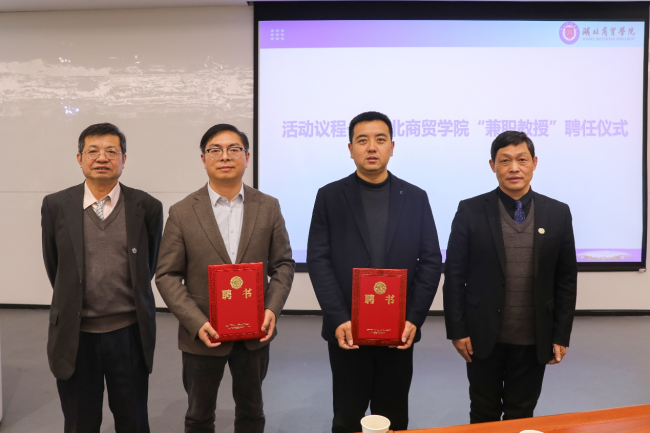课程开始前,学校举行了兼职教授聘任仪式。人工智能学院院长胡国明向在场师生介绍了来自中船709所武汉凌久微公司总经理黄松、武汉微诚科技股份有限公司董事长赵晓昌两位行业专家。湖北商贸学院校党委书记杨世雄为他们颁发了兼职教授聘书,标志着学校在校企协同育人方面迈出新步伐。