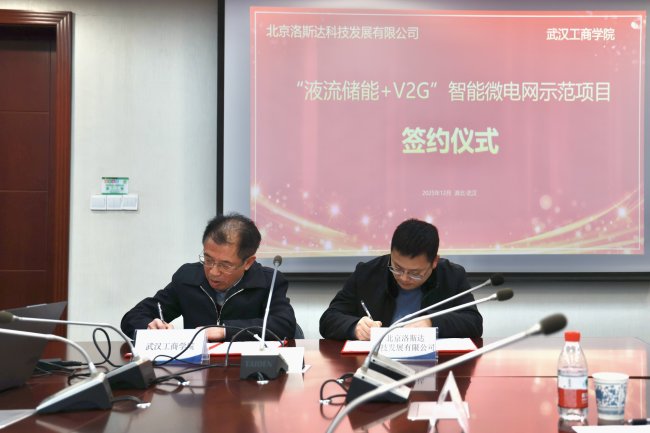 12月24日,武汉工商学院与北京洛斯达科技发展有限公司举行“液流储能+V2G”智能微电网示范项目合作签约仪式。双方将聚焦合作项目,围绕技术研发、场景应用与人才培养开展深入合作,探索校企产学研深度融合服务国家“双碳”战略的新路径。