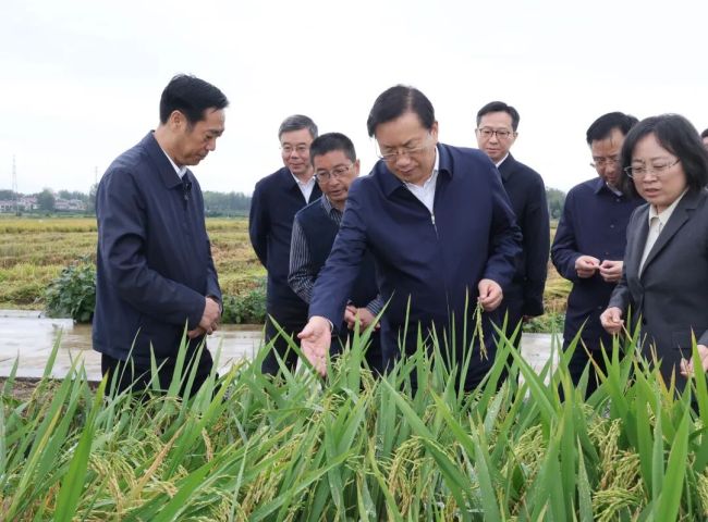 喜看稻菽千重浪,丰收美景动人心。王忠林来到南漳县清河管理区雷家巷社区水稻绿色高产高效示范基地,沿着田埂仔细察看稻谷饱满度,了解秋收进度、水稻单产、投入产出等情况,与种粮大户分享丰收喜悦,对雷家巷社区建成高标准农田、有效提升粮食产量表示肯定。他强调,强国必先强农。要深入贯彻习近平总书记关于“三农”工作的重要论述,落实省委工作要求,切实扛牢湖北农业大省保障国家粮食安全的政治责任。要抢抓时间组织开展秋收,加强农业社会化服务,提高机械化程度,确保颗粒归仓、寸草归垛;抢抓有利墒情,加强种子、化肥等农资供应,做好秋播生产工作;抓好粮食收购储备,保持收购价格稳定,保护和调动好农民的种粮积极性,推动粮食增产和农民增收齐头并进。