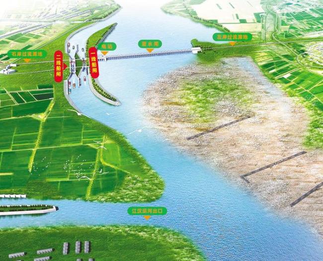 汉江兴隆枢纽2000吨级二线船闸效果图。(受访单位供图)