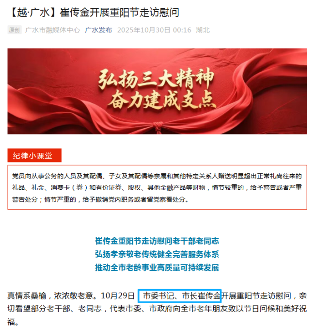 真情系桑榆,浓浓敬老意。10月29日,市委书记、市长崔传金开展重阳节走访慰问,亲切看望部分老干部、老同志,代表市委、市政府向全市老年朋友致以节日问候和美好祝福。