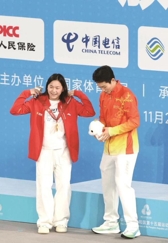 □楚天都市报极目新闻记者胡迪凯摄影:楚天都市报极目新闻记者邹斌 11月10日下午,第十五届全运会跳水男子3米板决赛在广东奥体中心游泳跳水馆举行。湖北选手王宗源、郑九源包揽该项目金银牌,这是王宗源在本届全运会斩获的个人第二金,也是湖北体育代表团在本届全运会获得的第四金。 王宗源加冕双金王 本届全运会的跳水男子3米板比赛,采取预赛、半决赛在同一天进行,决赛单独进行的赛事安排,层层淘汰的赛制极大提升了赛事的精彩程度。在此前进行的预赛中,共有32名选手登场参赛,湖北队派出了王宗源、郑九源两人出战该项目。 预赛和半决赛上,王宗源都展现了强大且稳定的实力。预赛中,王宗源排名第一晋级,郑九源排名第二。半决赛,王宗源以580.40分排名第一晋级。郑九源排名第二。 决赛上,王宗源在最后一位登场,郑九源在倒数第二位登场。第一跳,王宗源稳定发挥,得分88.40分,排名全场最高,郑九源排在第二位。最后一跳,王宗源跳出全场唯一的超百分106.40分,郑九源也跳出了97.50分的高分。 最终,王宗源以总得分549.85分夺得冠军,郑九源以510.60分夺得亚军。这枚金牌是王宗源在本届全运会继男子1米板夺金后,获得的个人第二金,也是湖北体育代表团在本届全运会获得的第四金。 在遗憾中变得更强 赛后的颁奖仪式上,王宗源、郑九源和教练跳着站上领奖台。他们挥手向看台上的观众致意。和他们同在国家队的广东队选手全红婵也来到现场,她挂着王宗源、郑九源的奖牌分别和两人合影,调皮地送上祝贺。 2001年出生于湖北襄阳的王宗源,在东京奥运会首次站上奥运赛场,便获得了男子双人3米板金牌和单人银牌。在巴黎奥运会上,王宗源再夺男子双人3米板金牌和单人银牌。上届全运会,王宗源也是拿到了男子双人3米板金牌和单人银牌。 本届全运会,王宗源参赛男子团体、男子1米板、3米板三个项目,在开幕式前已经进行的两项决赛中,王宗源和队友获得男子团体银牌,并夺得男子1米板金牌,收获了个人本届全运会首金,也为湖北跳水队取得了本届全运会的首金。 赛后的新闻发布会上,在提及从两届奥运会到本届全运会的感受时,王宗源表示:“从东京到巴黎再到这届全运会,确实经历了很多事情,特别是在训练中遇到伤病的时候,也经常会陷入迷茫。单人3米板金牌也是我在全运会上的遗憾,但是每个人在成长中都会有很多遗憾,这些遗憾让我经过成长后,变得更强。” 展望新的洛杉矶奥运周期,王宗源表示,新周期的备战确实也已经开始了,放下包袱和压力,一步一个脚印、脚踏实地地完成每一件事情,这是他们当下最重要的。