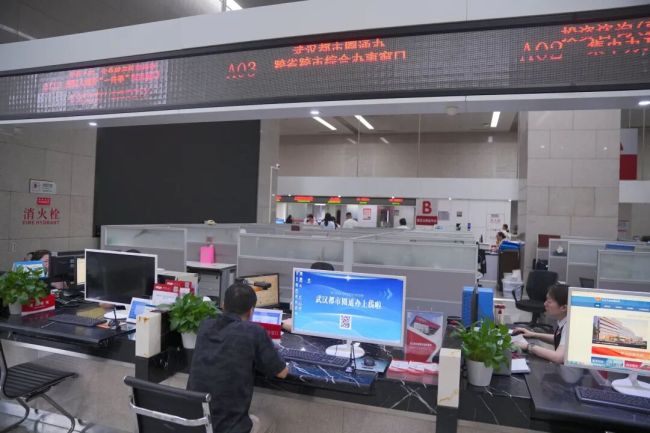 武汉市民之家武汉都市圈通办窗口,市民正在办理业务。王海摄