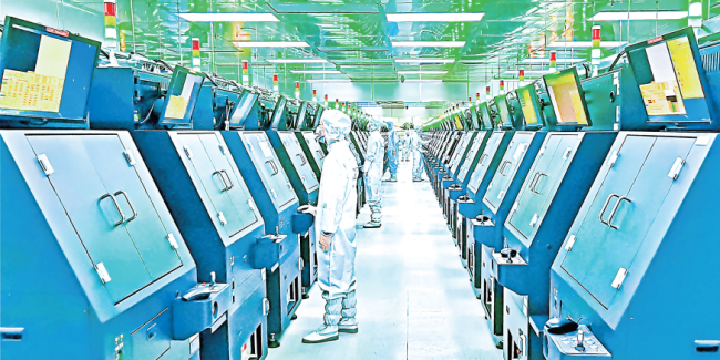 鄂州依托毗邻光谷的优势,以三安光电为链主,吸引显示芯片产业链上下游企业落户,与武汉共同助力湖北打造世界级“光芯屏端网”产业集群。图为位于鄂州葛店的三安光电生产线一角。通讯员方仲华摄