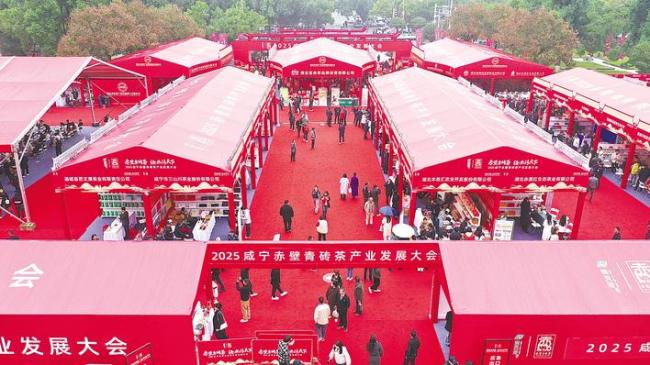 2025咸宁赤壁青砖茶产业发展大会吸引各地采购商。(湖北日报通讯员陈红菊摄)
