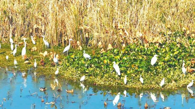白鹭在水草丛休憩。(枝江市融媒体中心安超摄)