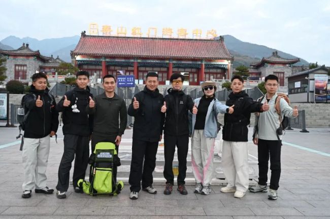 梁成和他的团队成员在泰山山脚下合影周盛平摄