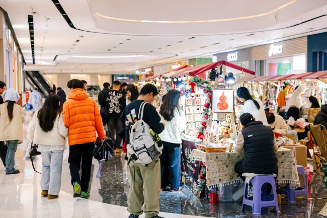 武汉江宸天街内,消费者对手工市集兴趣浓厚。