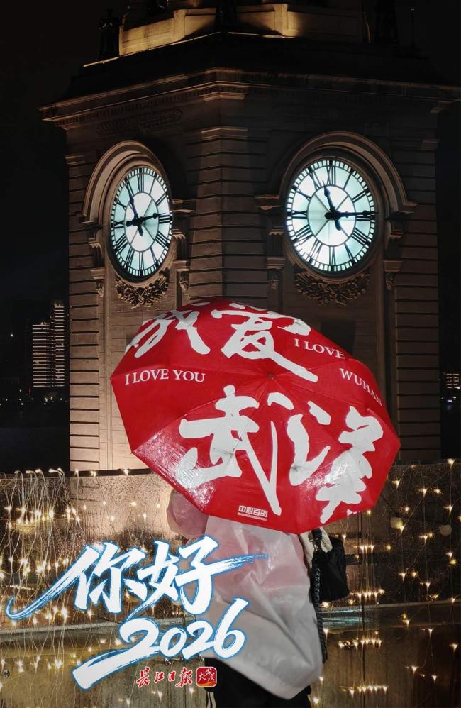2025年12月31日晚11:45,江汉关广场,“你好,2026”江汉关跨年光影秀活动正式启幕,《长江之歌》拉开跨年盛宴的帷幕,用悠扬乐声为全国观众送上辞旧迎新的祝福。这是武汉爱乐乐团专门为跨年夜录制的展播乐曲,也是百年钟楼第一次以交响乐为跨年夜开场。