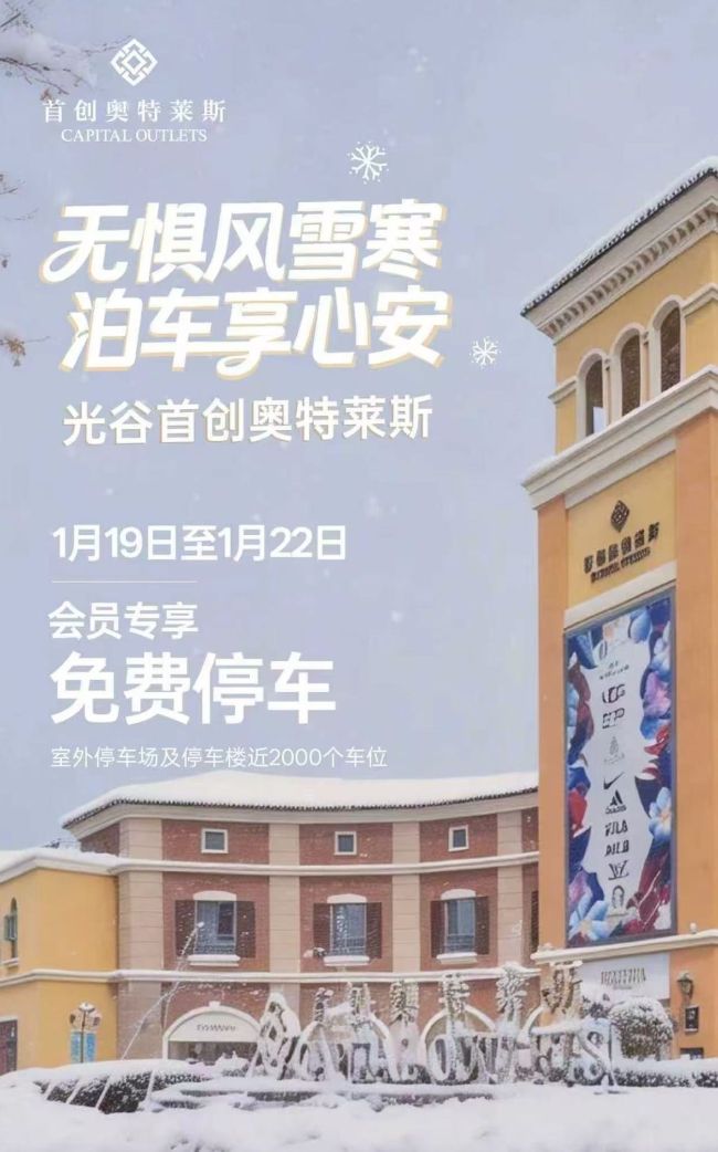 首创奥特莱斯:从1月19日至1月22日免费开放停车楼及地面停车场,车位数量近2000个;
