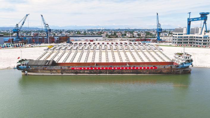 湖北造船用上国内首创技术 翻堤越坝 船舶“坐滑梯”下水