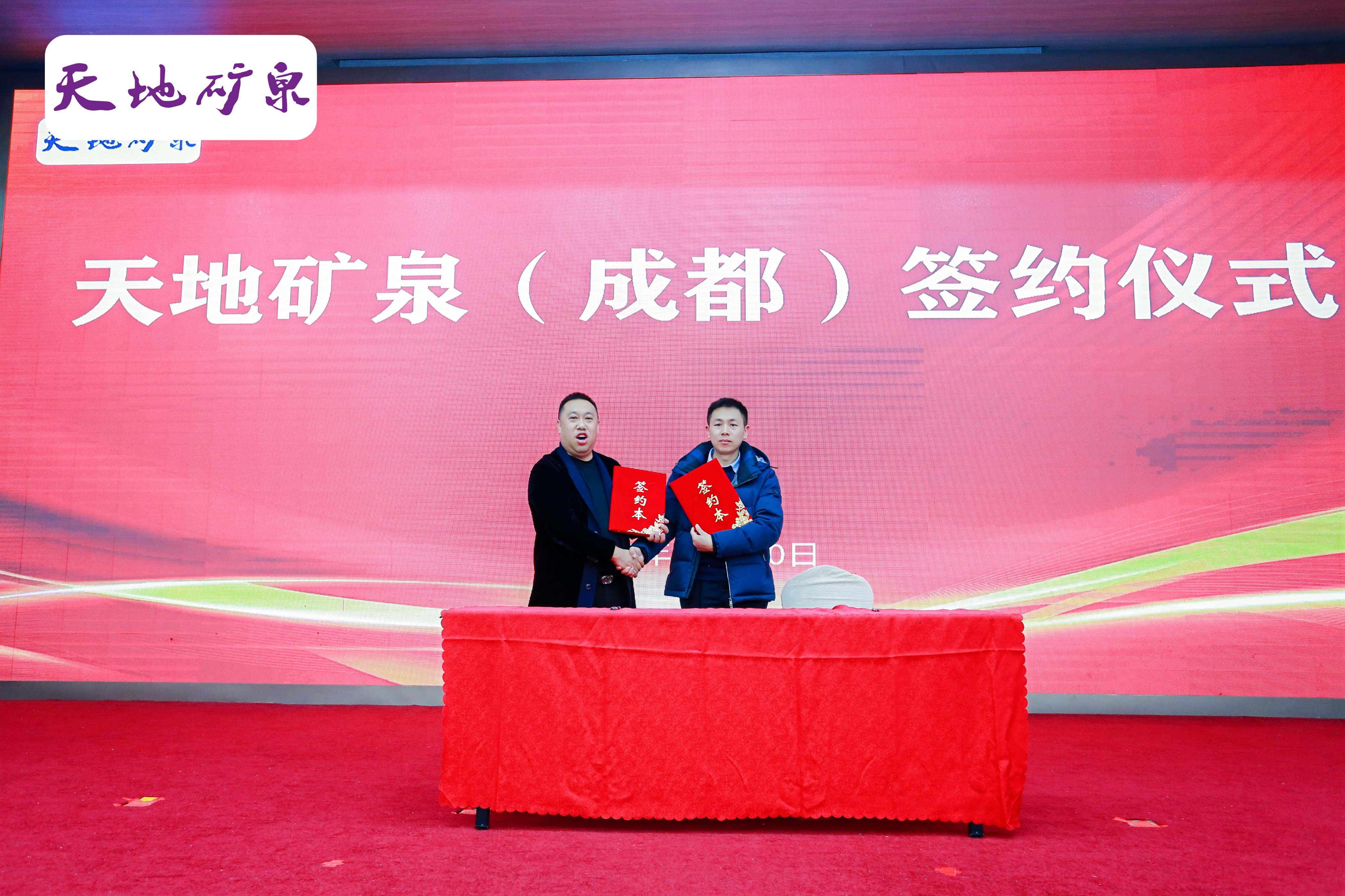 会议现场亮点纷呈,天地矿泉(内蒙古)、天地矿泉(成都)签约仪式顺利举行,标志着品牌全国战略布局再添重要支点。蒋乙禄董事长特别介绍了内蒙古签约代表——内蒙古万盛昌水业董事长张俊,他拥有27年桶装水行业经验的资深从业者,点赞其对行业的坚守与热爱。张俊现场表示,他见证了天地矿泉的品牌成长与实力积淀,未来将全力在内蒙古推广天地矿泉品牌,把优质的天地矿泉水送往草原各地。