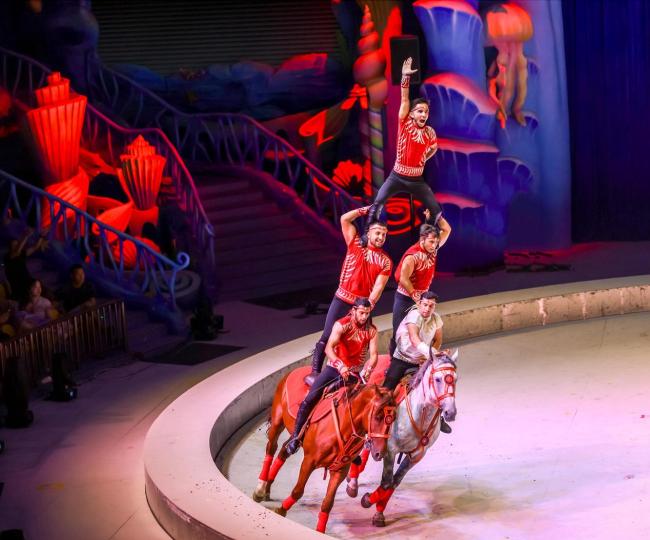此外,还有高颜值五福NPC、萌趣动物明星、潮流男女团组成的新春巡游阵容,全程与游客亲密互动、送福纳祥,潮流男女团还带来专属歌舞表演,与现场游客合唱、击掌,传递新春喜庆。极地大马戏“马上有戏”打造海陆空全方位新奇体验,魔术杂技、优雅马术、环球飞车、生死魔轮等世界级表演轮番登场,惊险与趣味并存,让游客大饱眼福。