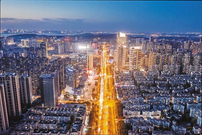 夜色中的关山大道依然活力四射。(湖北日报通讯员向晖摄)