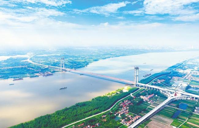 建设中的双柳长江大桥及接线工程是武汉城市圈环线的重要组成部分。(湖北日报全媒记者柯皓摄)